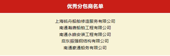 5月8日晚,振華啟東海工成立10周年職工歌詠比賽暨2024年“六比六創(chuàng)·三型一流杯”奪標(biāo)勞動競賽啟動儀式在公司行政樓廣場隆重舉行。活動中,公司對2023年度“優(yōu)秀分包商”“優(yōu)秀項目部”“優(yōu)秀團隊”“優(yōu)秀干部”“優(yōu)秀員工”進行表彰。 南通豪通船務(wù)有限公司榮獲2023年度“優(yōu)秀分包商”稱號。